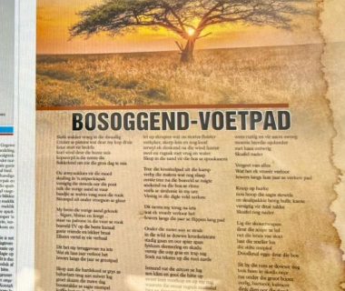 Gedigte Bos Oggend Voetpad – My gedig – bosoggend voetpad – word deur SA Jagters gepubliseer. Die gedig is gebore in my verskeie vroeg oggend staproetes in die jagveld. My eerste geldjies uit skryfwerk!